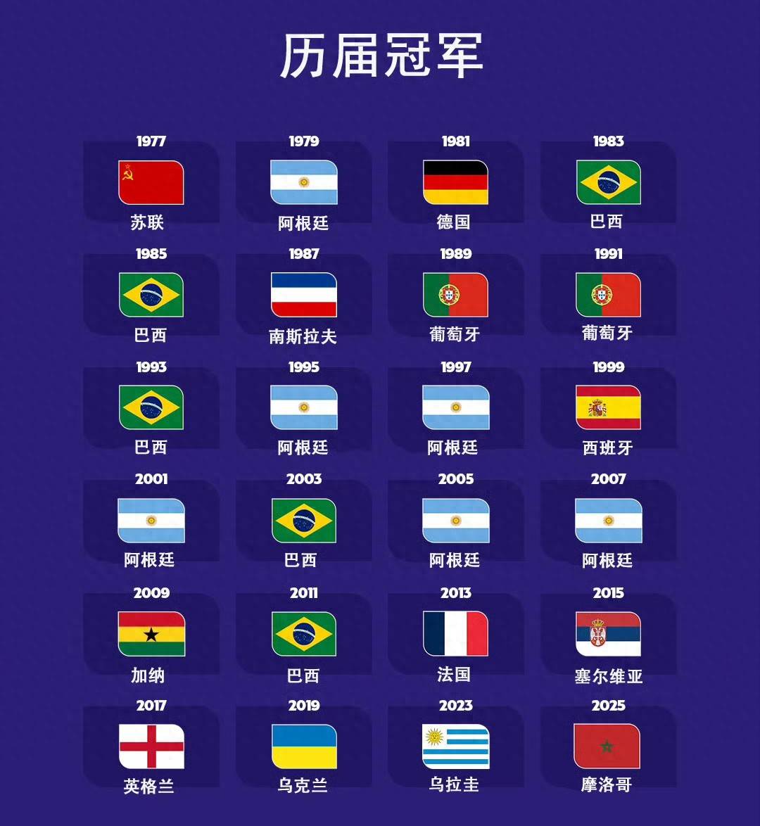 2026世界杯赛程,世界杯投注,世界杯球队阵容,世界杯预测,世界杯直播/全网最全的2026年世界杯专题报道,提供赛程时间表、球队阵容、赔率分析、投注预测与实时比分,助你掌握每一场焦点战况。在2025年U20世界杯(世青赛)中,摩洛哥U20男足历史性地首次夺得冠军。在决赛中,他们以2-0战胜了六届世青赛冠军阿根廷队,成为世青赛历史上的第14支冠军球队。这一胜利标志着摩洛哥足球的一大突破,证明了他们在国际舞台上的崛起。