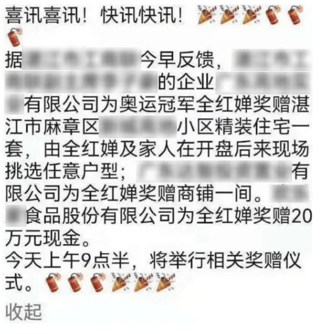 当全红婵一家还沉浸在夺冠的喜悦中时,一场围绕她们的风暴正在悄然酝酿。迈合村的房屋被网红围得水泄不通,各种“亲戚”突然冒了出来,还有商人、企业送房、送店铺、送现金。