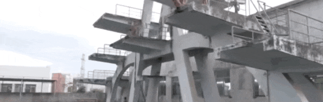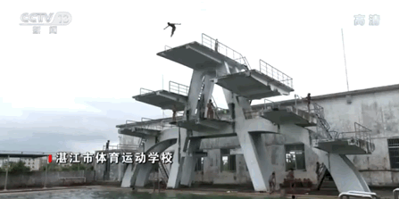 湛江体校的训练条件简陋得令人心酸,跳台是水泥砌的,侧面由于长期发霉,已然变黑。跳板被踩动时,会发出“咯吱咯吱”的响声,仿佛年久失修一般。就连泳池里的水也有些发绿、发黑,根本看不见底。