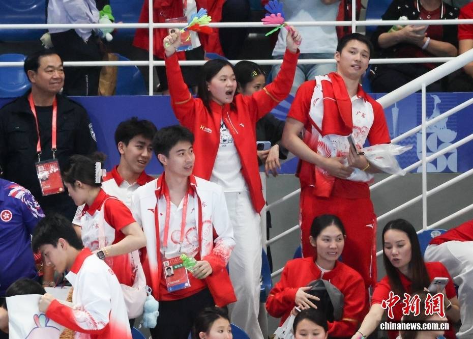 观众席上的全红婵,已抢先一步起身欢呼。她为昔日搭档喝彩,兴奋的模样,仿佛比自己夺冠还要高兴。