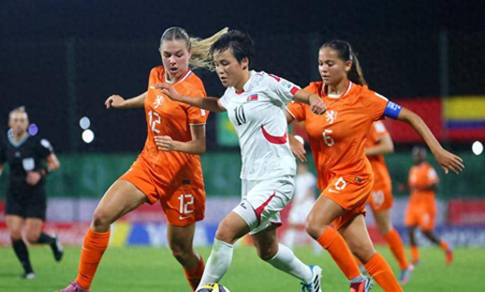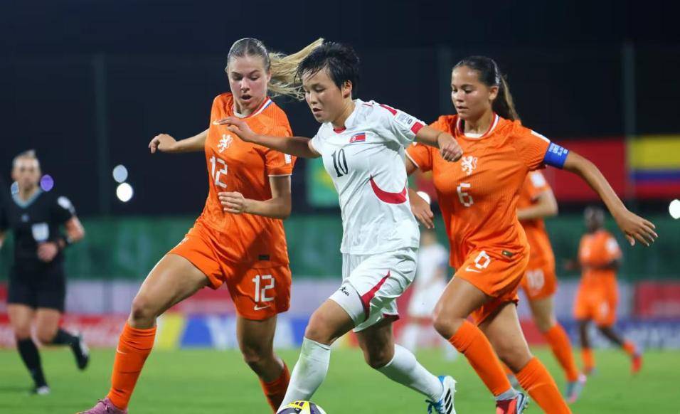 比赛前 28 分钟,朝鲜女足便奏响进球狂想曲:第 14 分钟金元心抓住防守失误头槌破门,第 18 分钟朴礼英接队友妙传推射得手,第 42 分钟李义京前场逼抢完成致命一击,三球领先让比赛早早失去悬念。荷兰女足下半场的破门因违规被吹,最终无奈与冠军失之交臂。