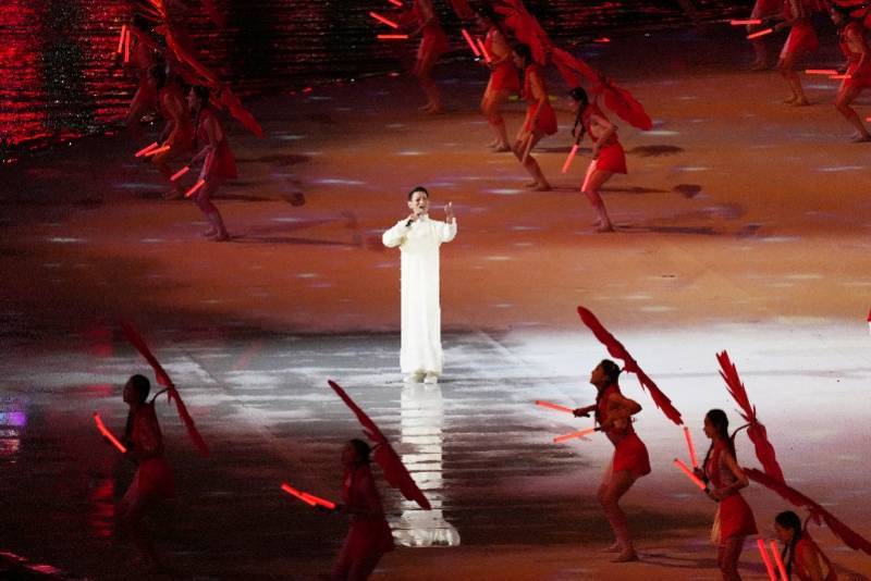 2025年11月9日,刘德华在开幕式现场演唱。 当日,第十五届全国运动会开幕式在广东奥林匹克体育中心举行。 新华社记者 薛宇舸 摄