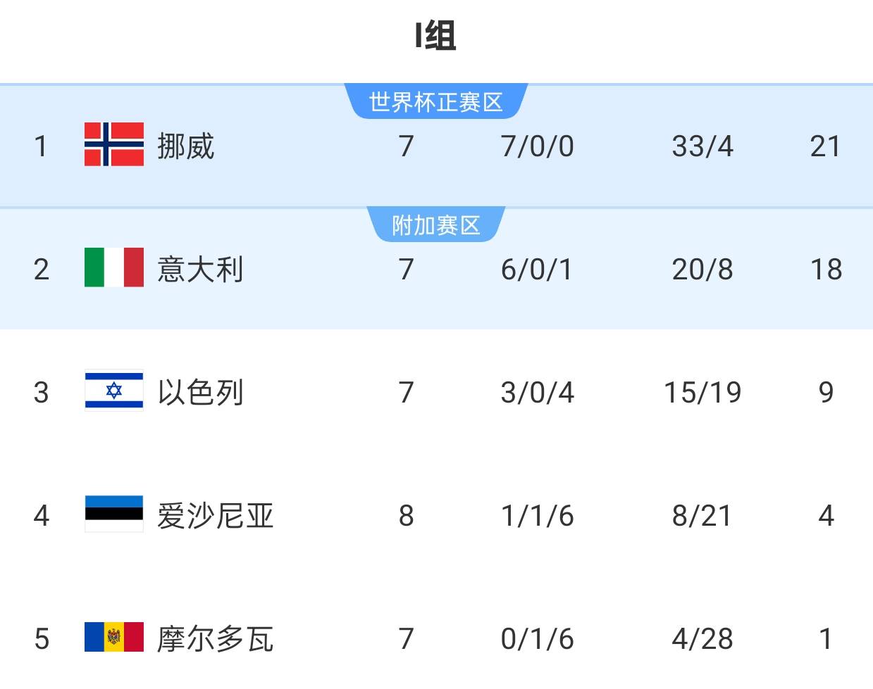 最终,挪威4-1大胜爱沙尼亚,以3分以及17个净胜球优势力压意大利领跑,基本上已经锁定小组头名。