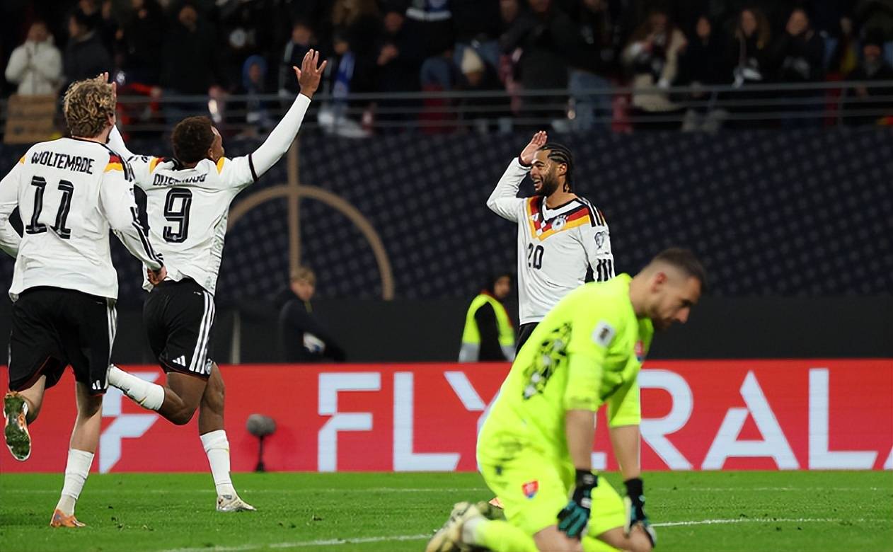 因为此前德国在世界大赛中表现低迷,所以世预赛的赛果也令球迷们担心,但是此役的确是让支持者吃了定心丸。第18分钟德国角球机会,皮球h.5500.HKrr.6362.HKrp.8682.HKkw.9769.HK被门将扑出,基米希再次传中球助攻沃尔特马德头球破门。第29分钟格雷茨卡在中路直塞球助攻格纳布里推射破门。第36分钟维尔茨送出长传球助攻萨内破门,第41分钟沃尔特马德抢断后传球,维尔茨禁区线挑传助攻萨内后点破门。